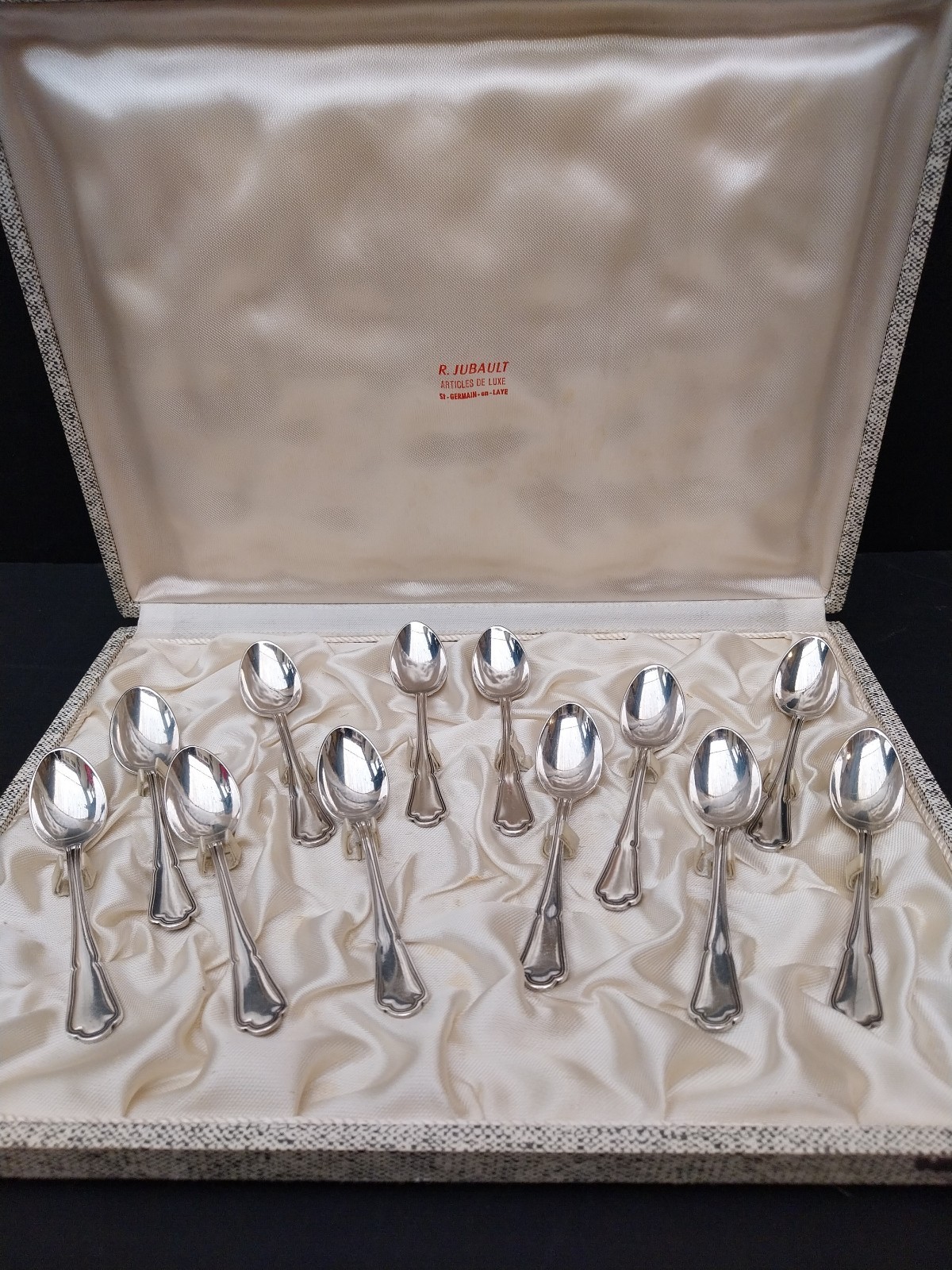 Un Ensemble de Cuillères Élégant : 12 Cuillères – ERCUIS Orfèvre, café, moka, Métal Argenté avec écrin