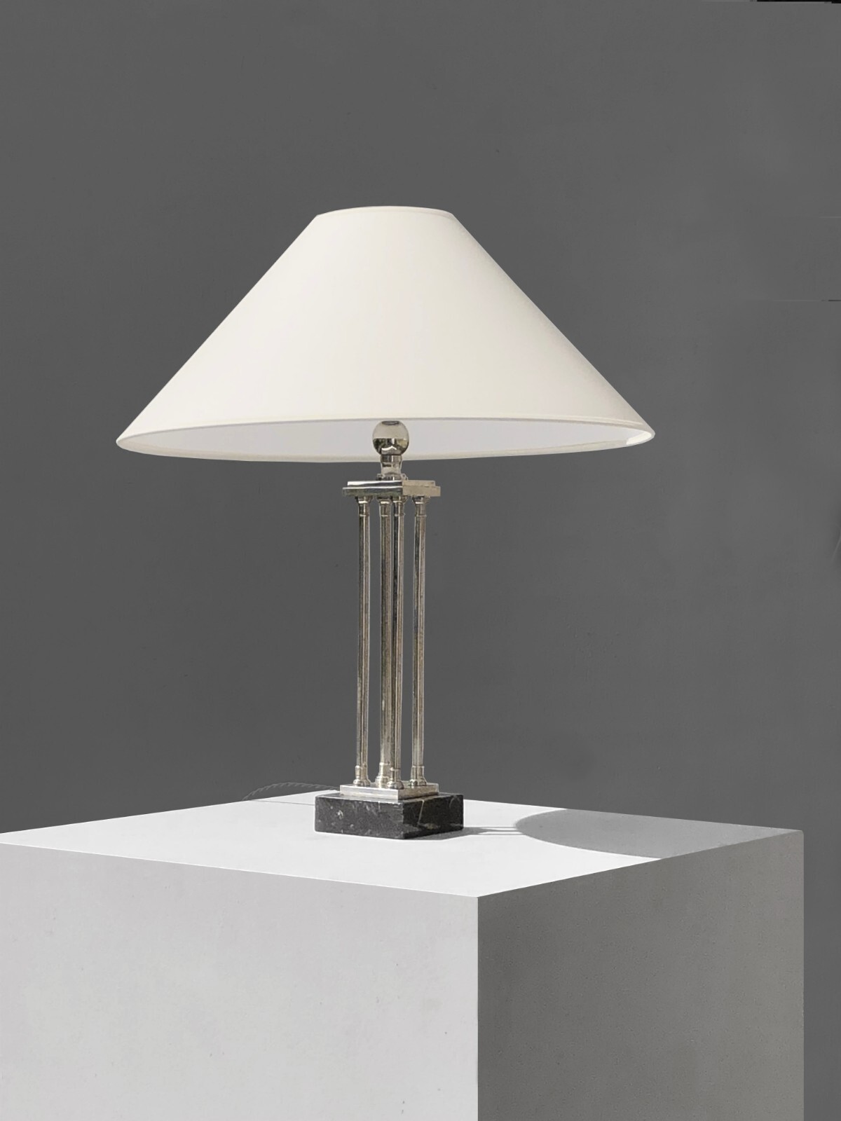 La lampe Art-Deco moderniste de 1930 est un objet d’art emblématique de l’époque, reflétant les principes esthétiques et les idéaux de la modernité. Conçue par les créateurs les plus talentueux de l’époque, tels que Jean-Michel Frank, Eileen Gray et Jacques Adnet, cette lampe incarne l’esprit de l’Art Déco, un mouvement artistique qui a dominé les années 1920 et 1930.