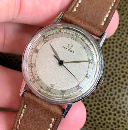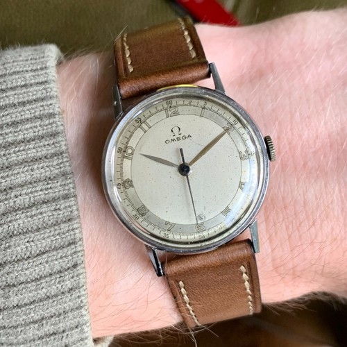 1939 Omega Arabic Numeral Stainless Steel Wristwatch