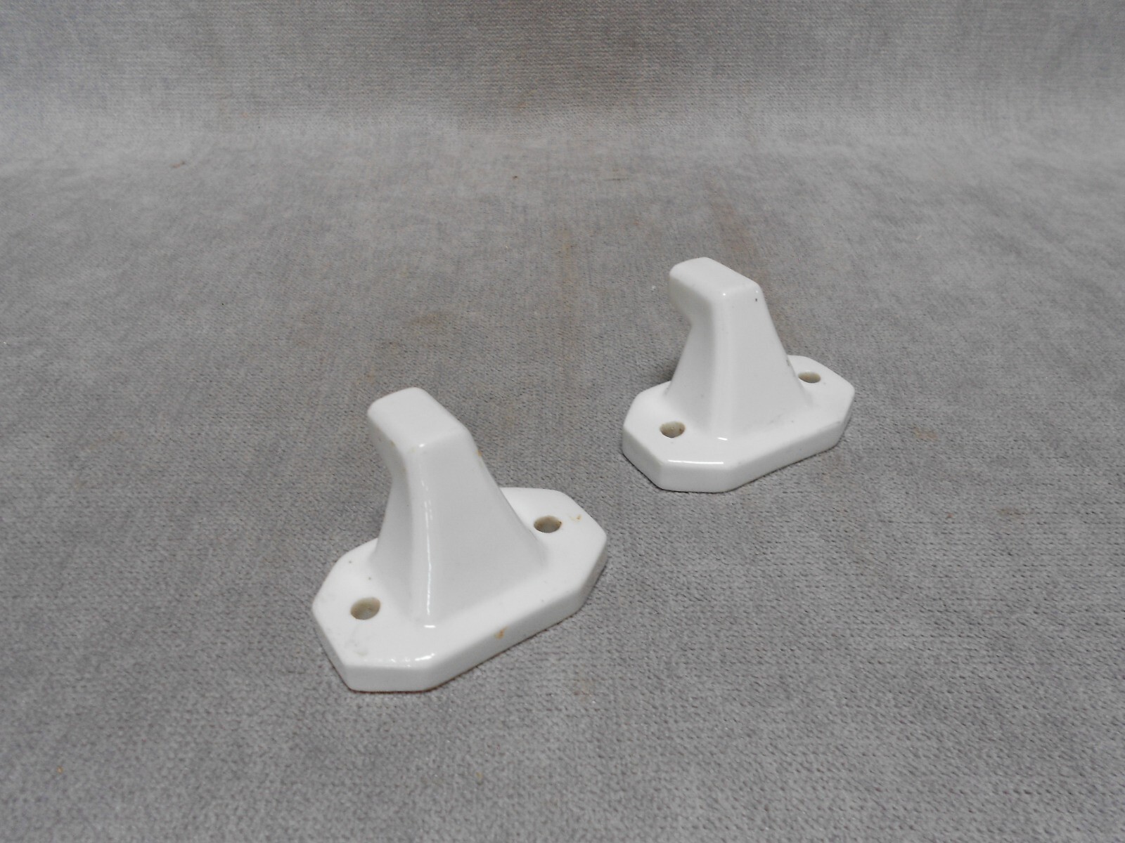 2 Anciens Porte-serviette Patères PORCELAINE BLANCHE salle de bain Art Déco