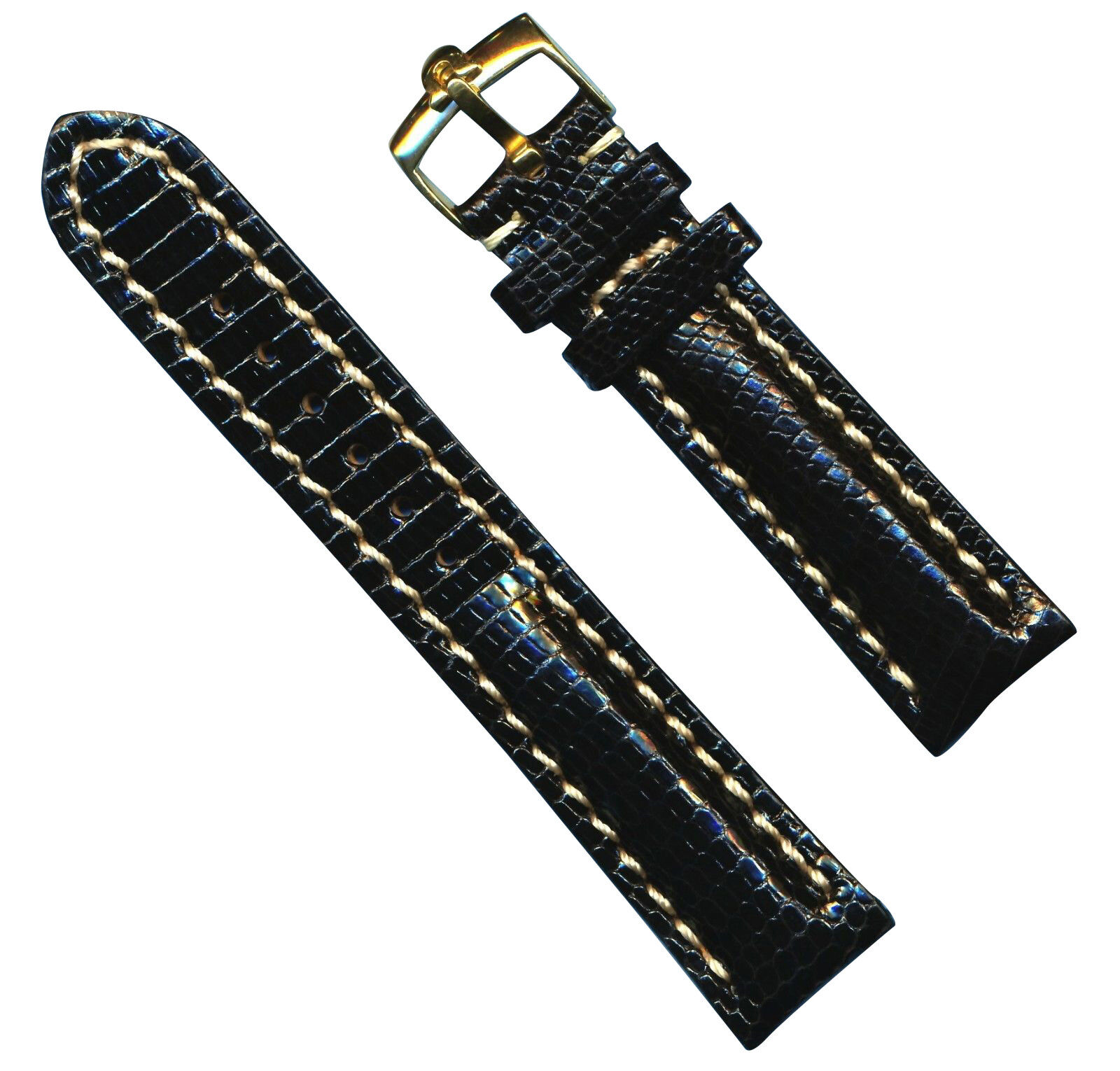 Caractéristiques du 22mm Véritable Lézard Rembourré MB Bracelet Ws & Omega Plaqué Or Boucle