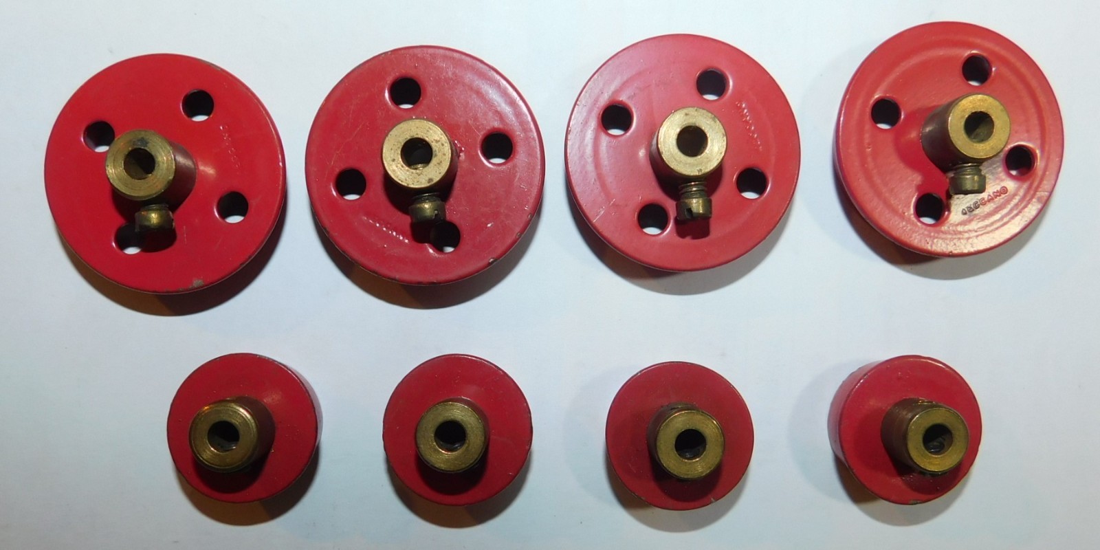 Titre : Découvrez les roues à boudin Meccano des années 50 : 8 x ROUE A BOUDIN 28mm & 19mm réf 20/20b pour les boîtes 6a à 10