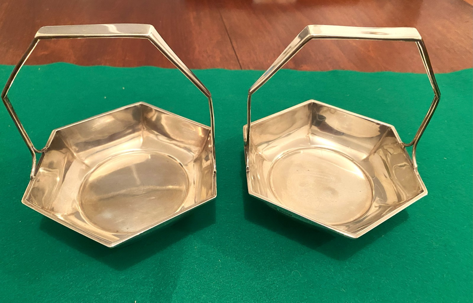 A pair of art deco silver bonbonnieres by Walker & Hall 1921