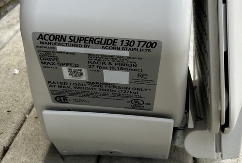 - Moteur : Le moteur de la chaise élévatrice ACORN SUPERGLIDE 130 est conçu pour être robuste et fiable, avec une puissance suffisante pour transporter des personnes de poids moyen.