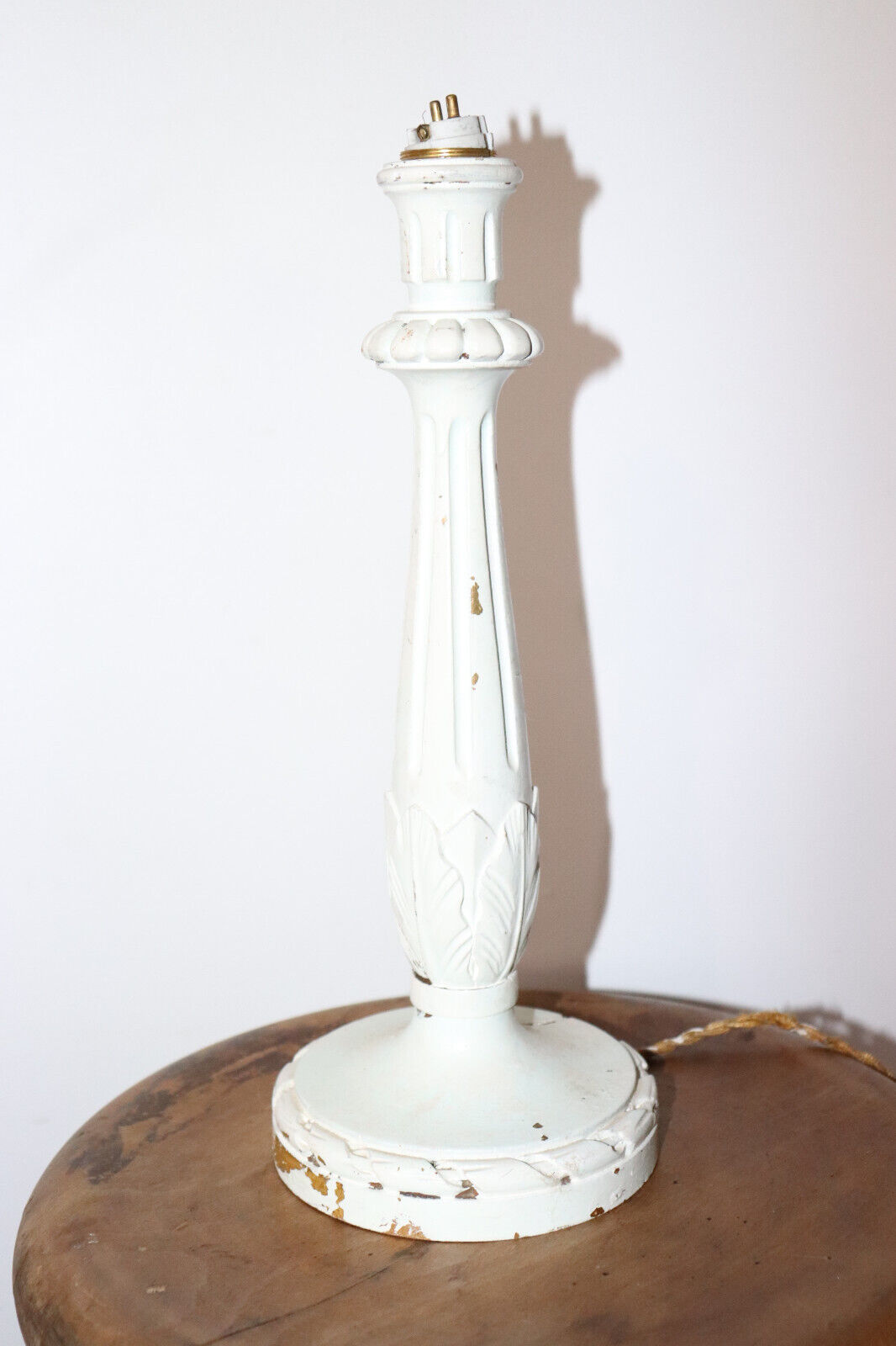 ANCIEN PIED DE LAMPE EN BOIS BLANCHI 32.5 cm