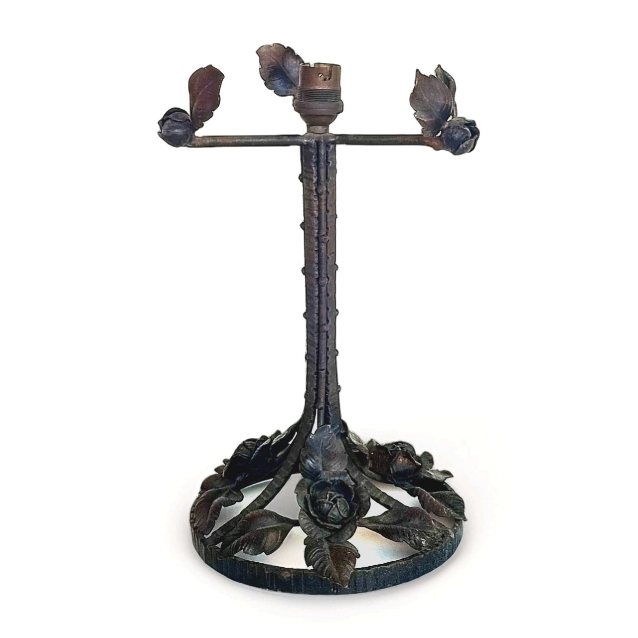 Un morceau d’histoire : l’ancien pied de lampe en fer forgé roses feuillage Art Déco