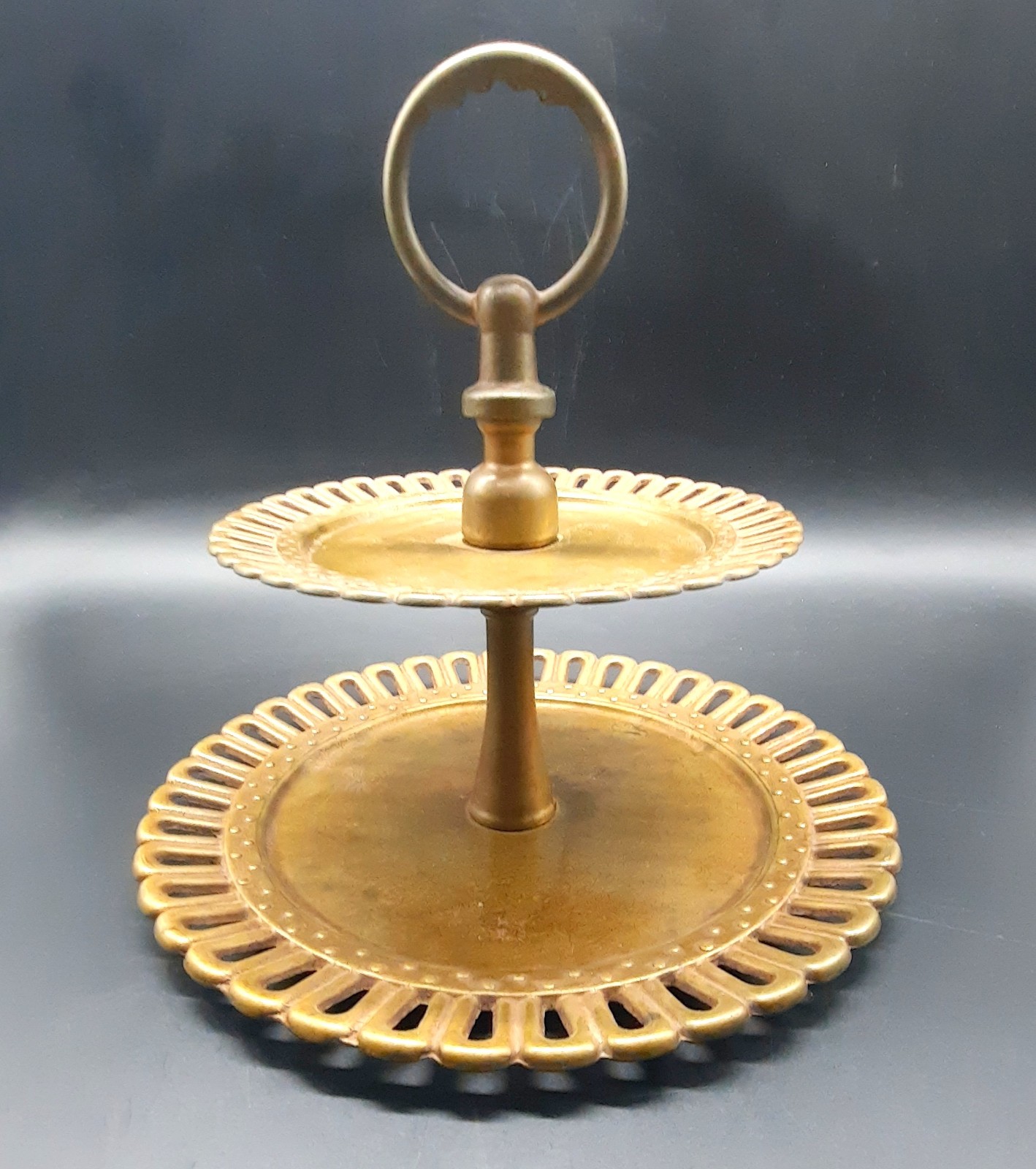 Be the first to review “Ancien Plateau sur Pied à Fruits Gâteau en Laiton ou Bronze Art Déco Vintage”