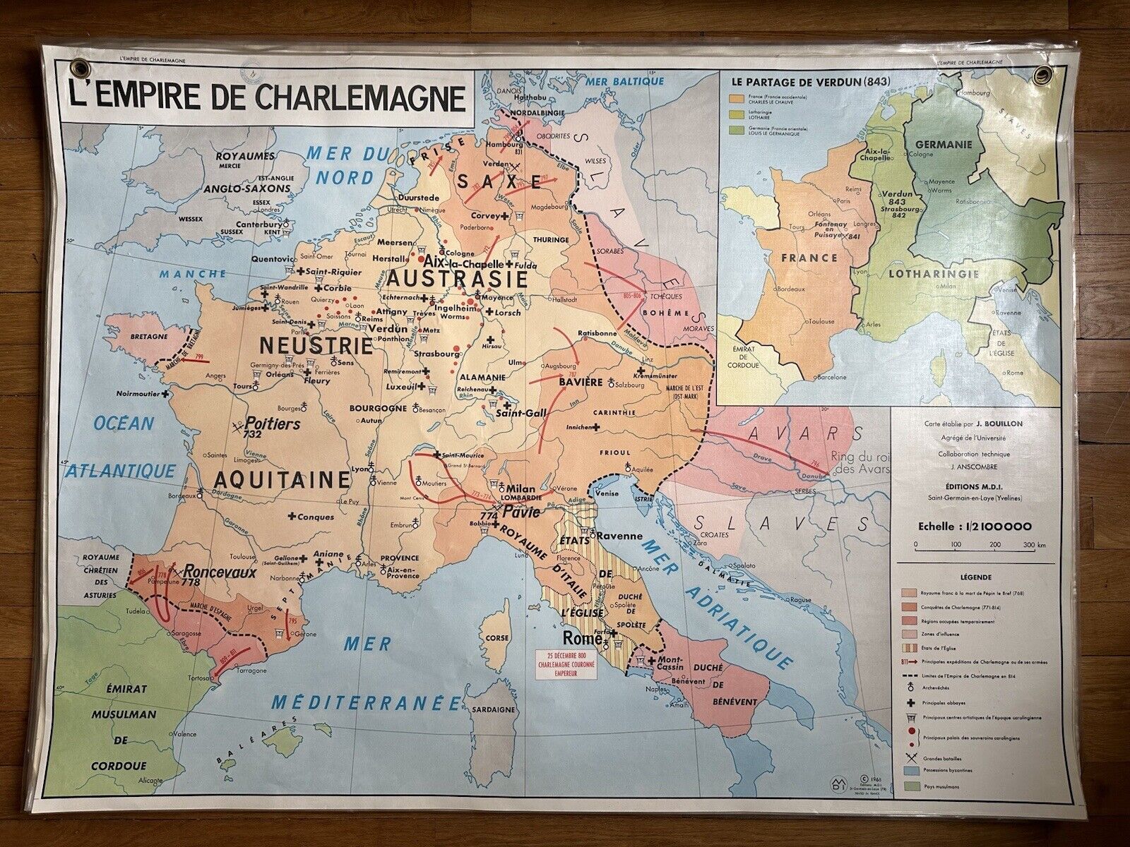 Ancienne affiche scolaire plastifiée – L’Empire de Charlemagne