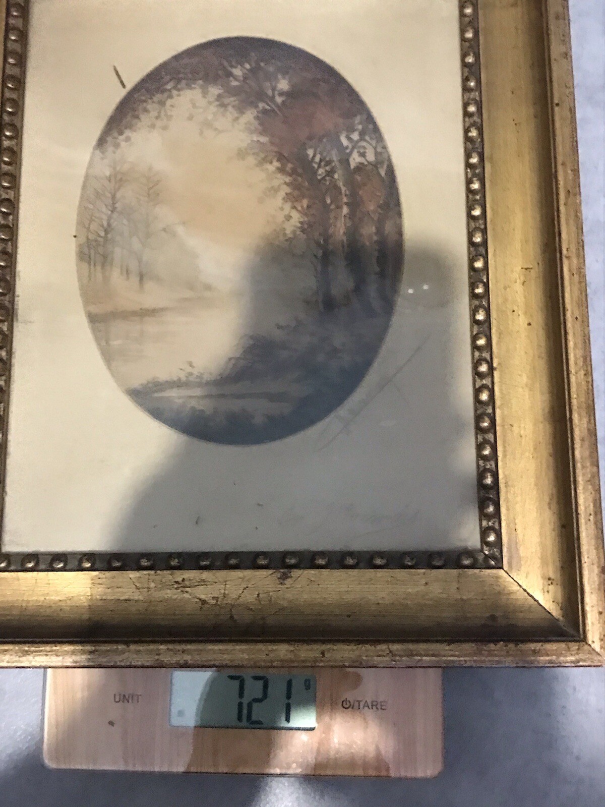 Ancienne Aquatinte Tableau Signé Vue Sur Lac XIX Siècle. Très vieillie