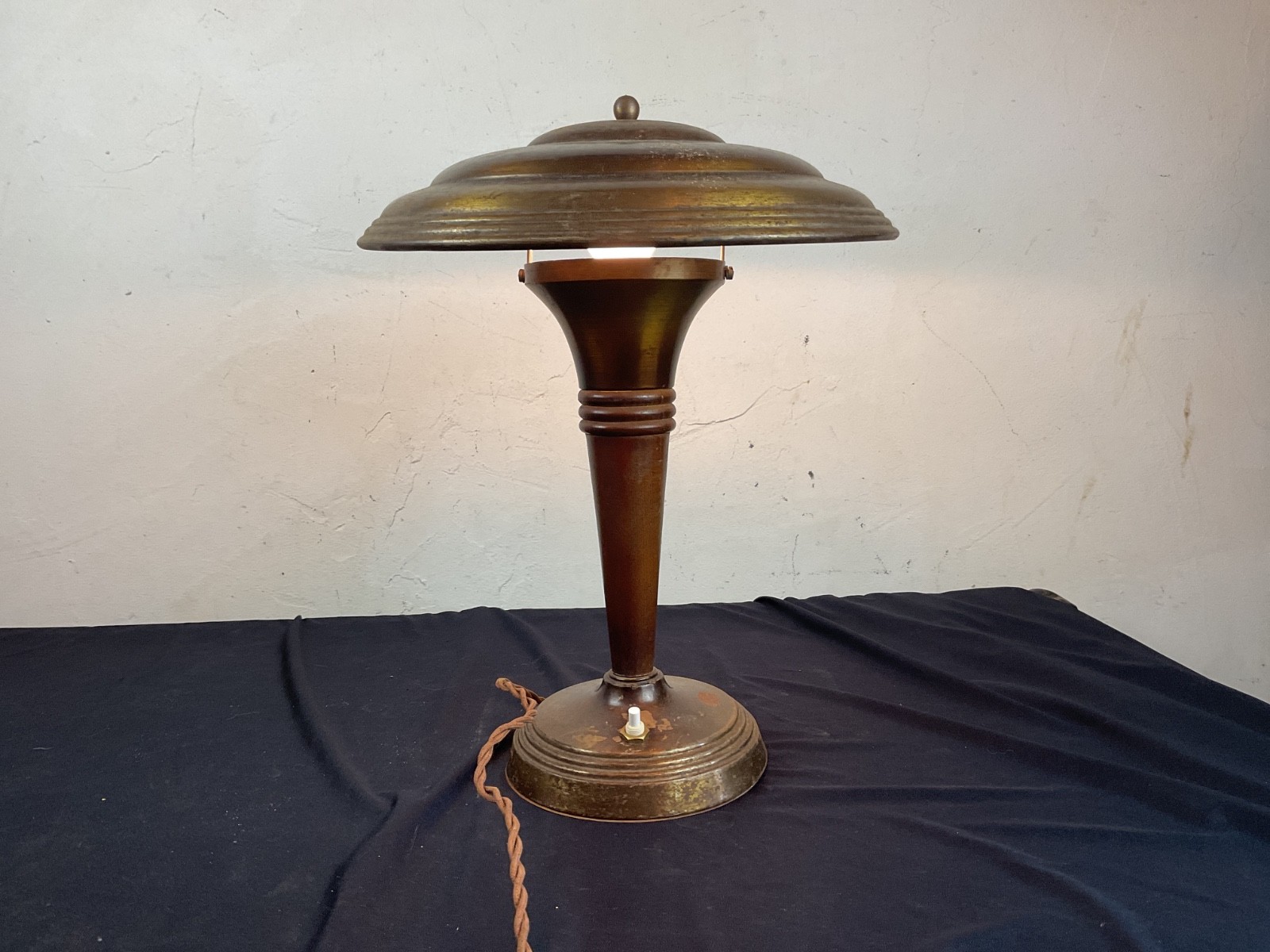 ANCIENNE LAMPE CHAMPIGNON ART DÉCO CUIVRE ET BOIS DESIGN MODERNISTE