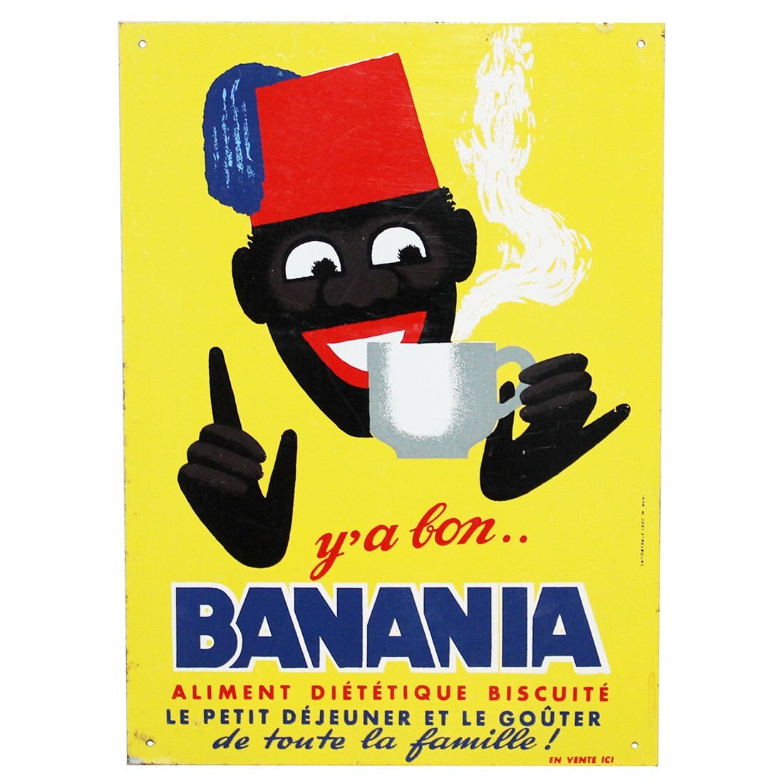 Une pièce de collection rare et emblématique : l’ancienne plaque publicitaire en tôle non émaillée de Banania, version Morvan
