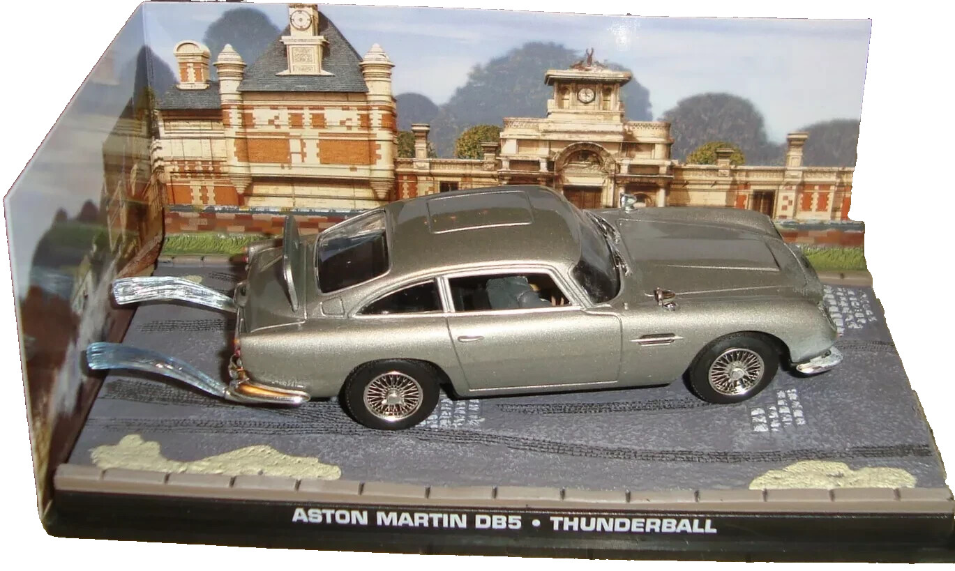 La société IXO / Fabbri a créé une réplique de l’Aston Martin DB5 à l’échelle 1/43, permettant aux fans de James Bond de posséder une miniature de cette voiture mythique. Cette réplique est très détaillée et reproduit fidèlement les caractéristiques de la voiture originale, y compris les gadgets qui l’équipent dans le film.