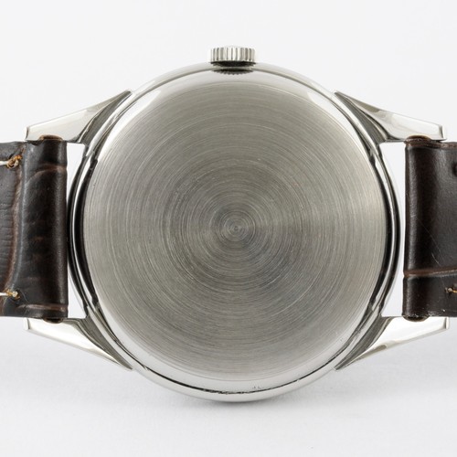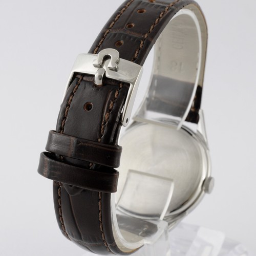 L’Omega Special Référence 2605 incarne l’esthétique des années 1950, avec un design épuré et élégant qui caractérise cette période. Le boîtier rond en acier, d’un diamètre de [insérer la taille], arbore une finition polie et satinée qui lui confère un aspect raffiné. Les lugs en forme d’araignée, dont les extrémités sont légèrement élargies, sont une caractéristique distinctive de cette référence et ajoutent une touche d’originalité à la montre. Le cadran, sobre et facile à lire, présente des indices et des aiguilles en forme de feuille, typiques des montres Omega de cette époque.