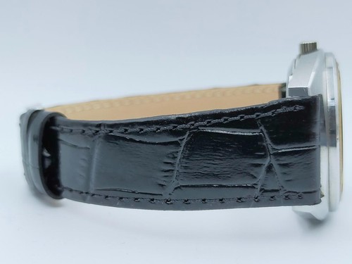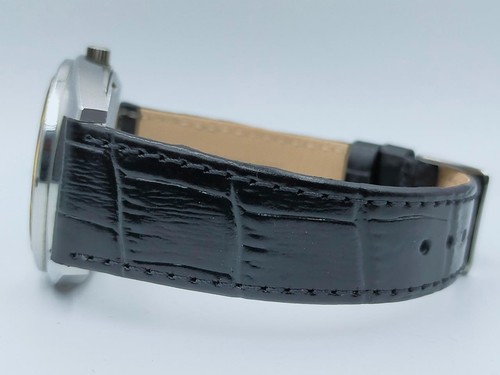 La montre a un cadran argenté avec des index et des aiguilles en acier, et est équipée d’une couronne en acier qui permet de remonter le mouvement. La montre est également dotée d’une fonction de date, qui est affichée à 3 heures. Le boîtier en acier est solide et robuste, et est équipé d’un verre en plexiglas qui protège le cadran.