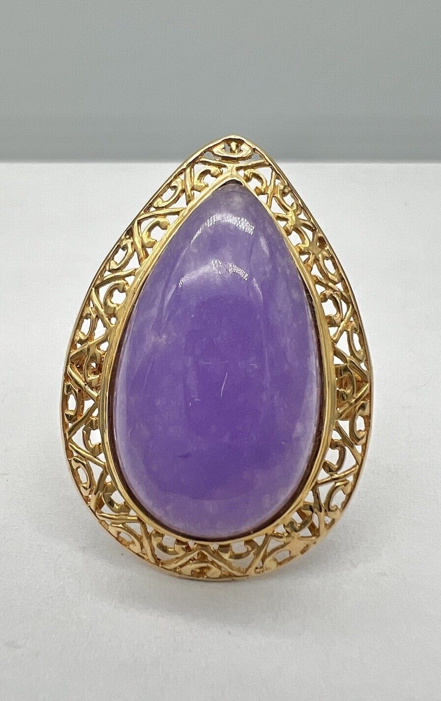 Bague Cabochon En Jade Lavande Violet En Or Jaune 14k En Forme De Poire