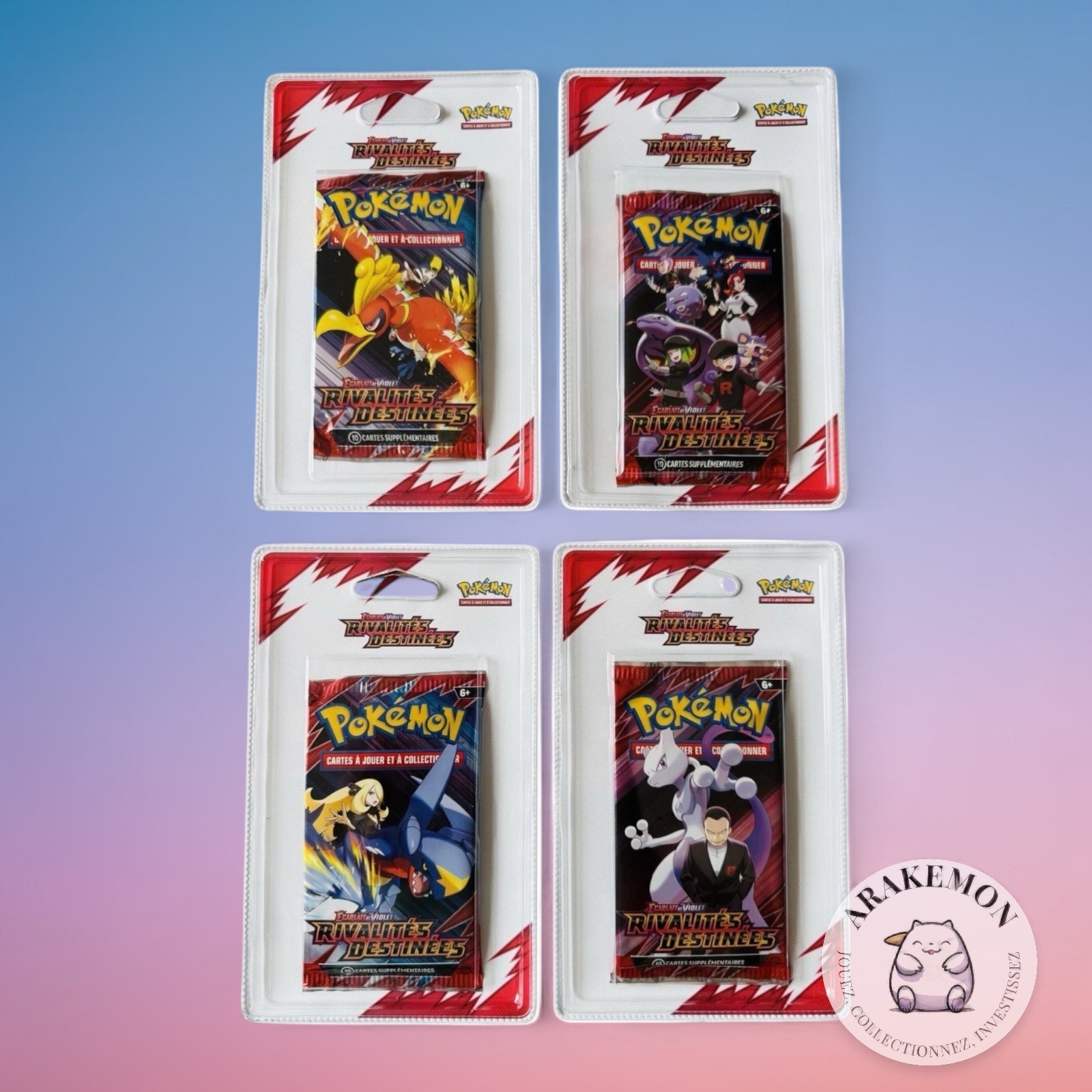 Les boosters sous blister Pokémon Destinées Rivalitées (EV10) offrent un nouveau défi pour les entraîneurs de Pokémon. Avec leurs nouveaux personnages, leurs capacités uniques et leurs combinaisons stratégiques, ces boosters sont une excellente occasion pour les fans de la série de renouveler leur collection et de tester leurs compétences. Alors, qu’est-ce que vous attendez ? Plongez dans l’univers de Pokémon et découvrez les secrets de la série Destinées Rivalitées (EV10) ! 🇫🇷