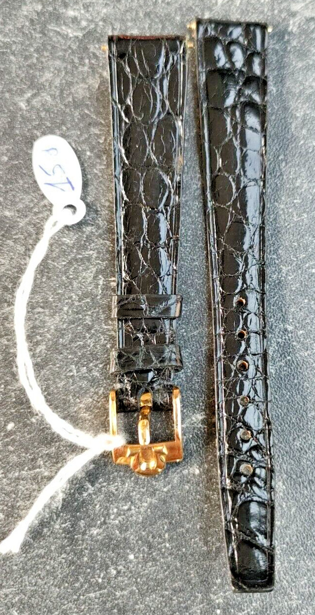 Bracelet Femme montre Omega 15 mm cuir lézard Noir boucle dorée neuf de stock