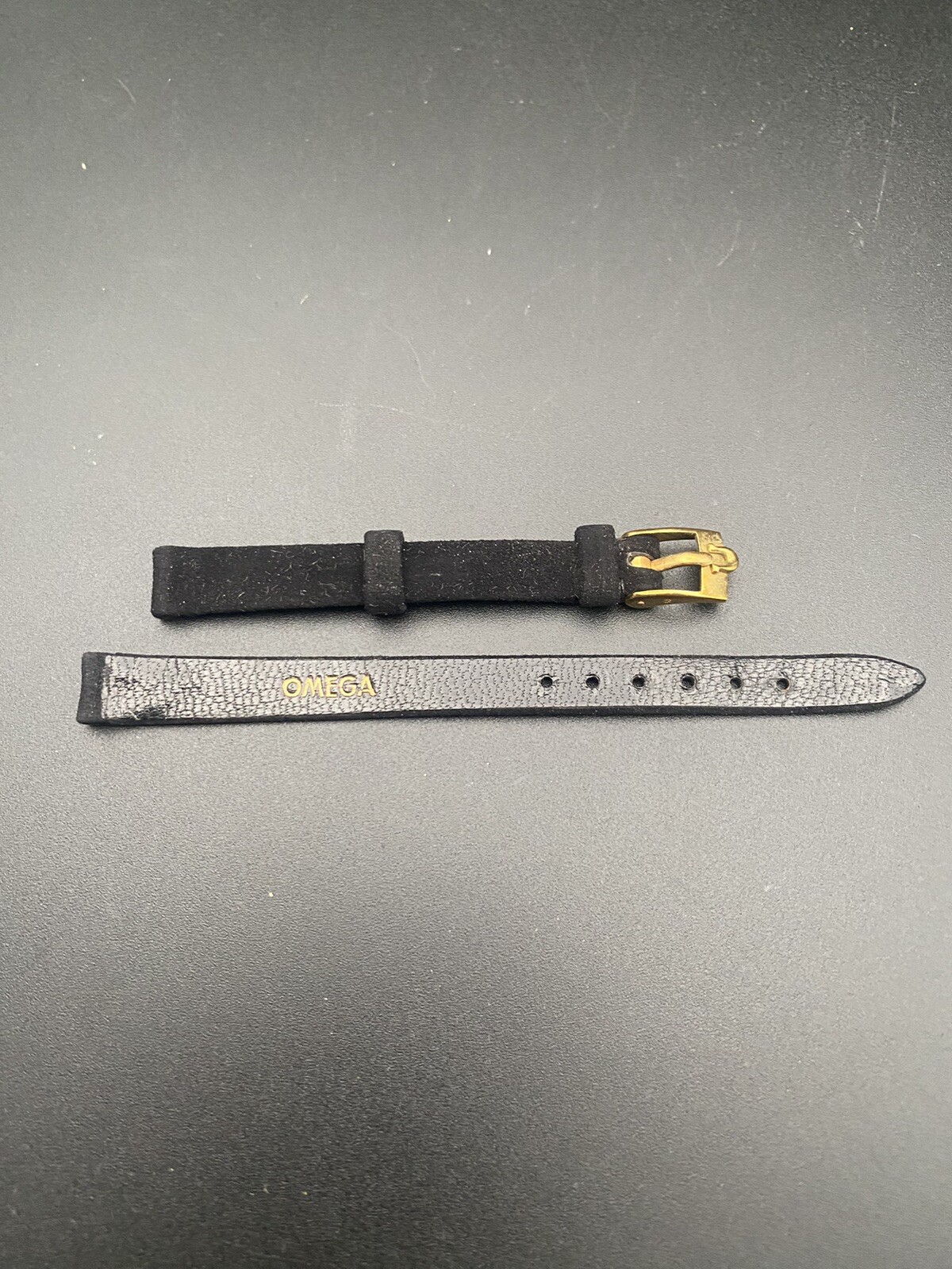 Bracelet Montre Dame Omega Swiss Made Noir Velours? 9mm Vintage Boucle Plaque Or
