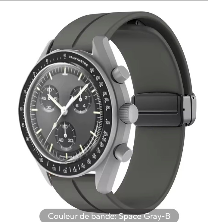 Bracelet silicone Gris Space Grey 20mm Moonswatch & Omega Speedmaster !!