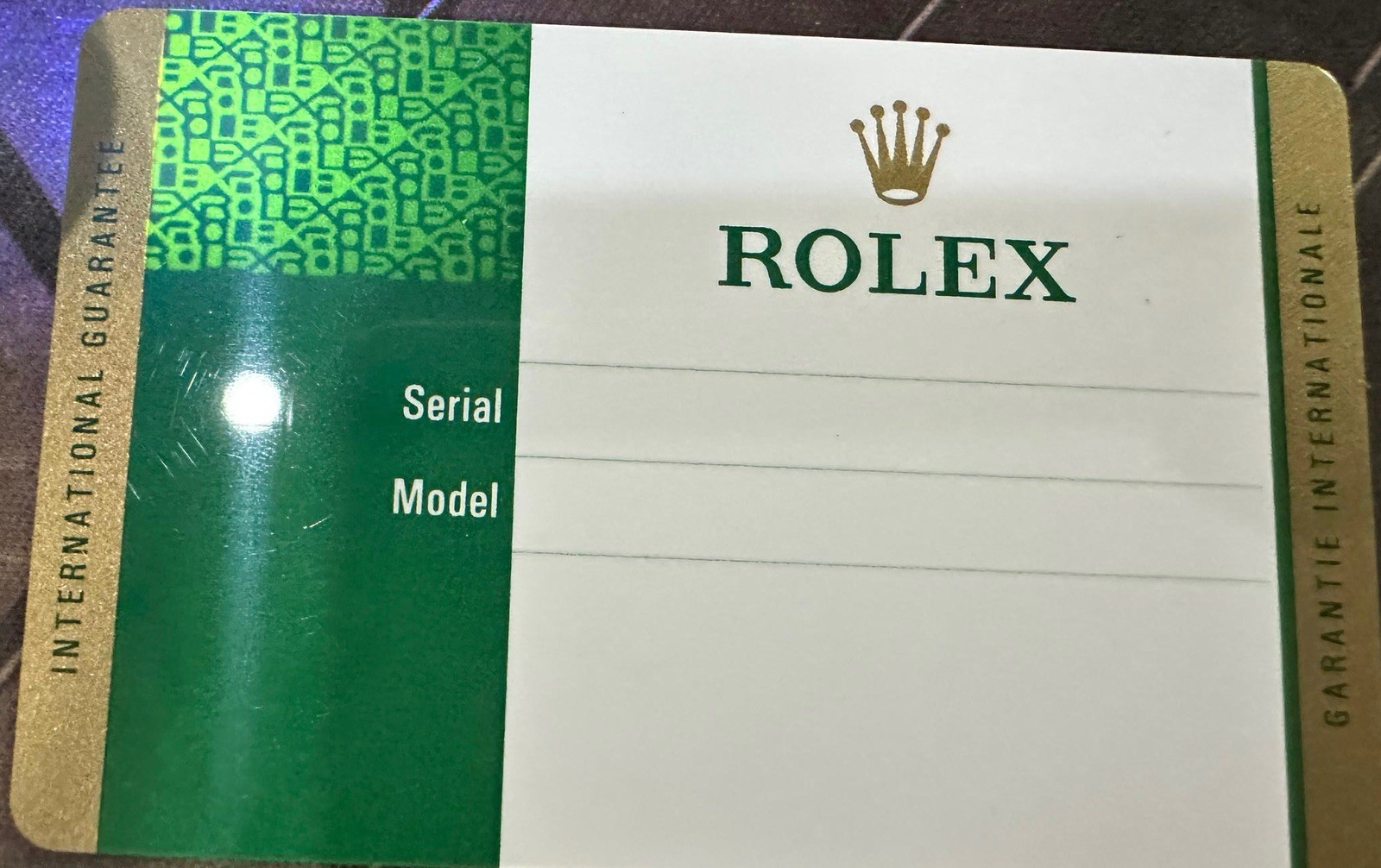 Carte Rolex Garantie vierge. Blank Card Customizable with your information.