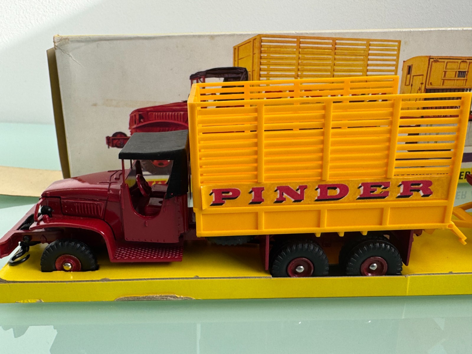 Ce modèle est particulièrement intéressant pour les collectionneurs français, car il est spécifiquement conçu pour le marché français. Le numéro de référence 881 indique que ce modèle fait partie de la série de voitures miniatures Dinky Toys destinées au marché français. La présence du logo du cirque Pinder et de la mention « Cirque Pinder » sur le camion ajoute à son caractère unique et à sa valeur pour les collectionneurs.