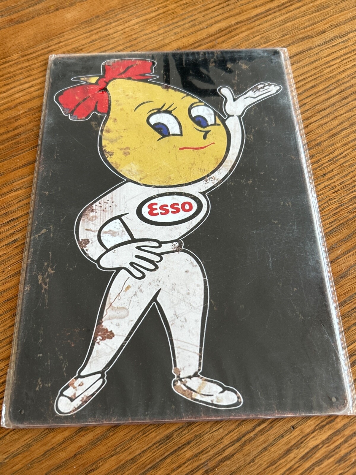Au fil des ans, la campagne a évolué, mais le personnage de la goutte féminine est resté un symbole emblématique de la marque Esso. Aujourd’hui, cette reproduction de plaque publicitaire en métal est un morceau d’histoire qui permet de revivre les années 50 et 60, une époque où la publicité était encore une forme d’art.