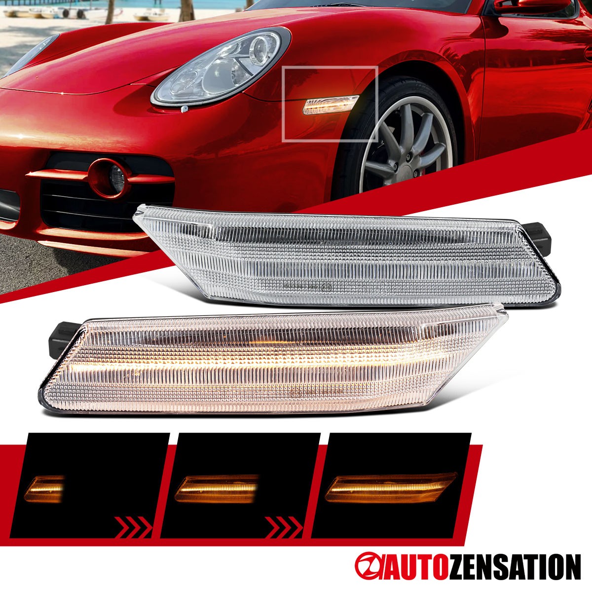 Fit 2005-2012 Porsche 911 997 Boxster 987 Sequential LED Side Marker Signal Lamp