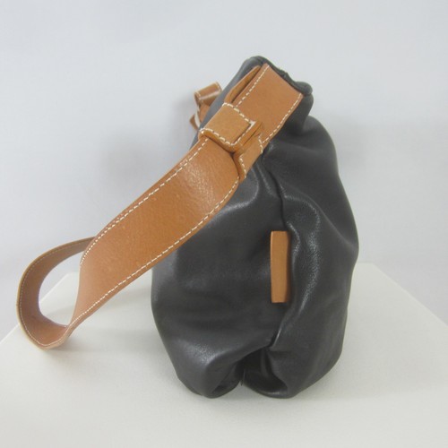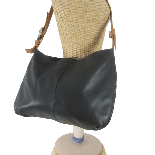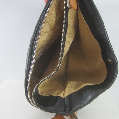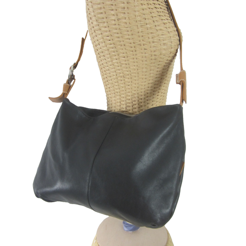 Francesco Biasia Black Brown Leather Minimalist Shoulder Crossbody Bag Roomy