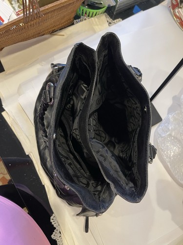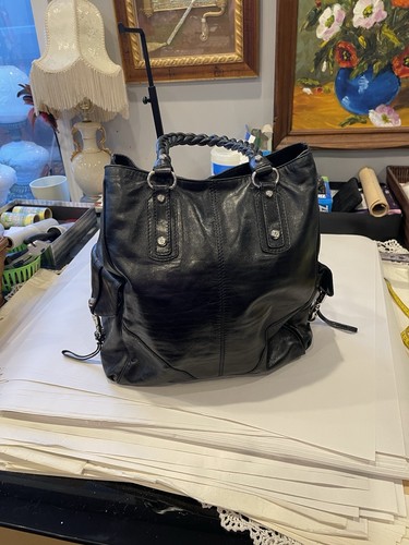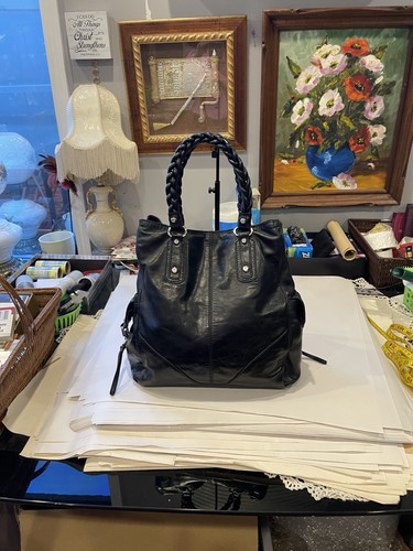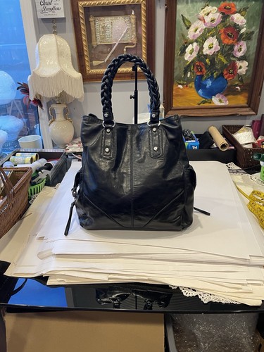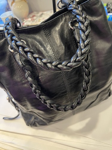 Francesco Biasia Black Leather Large Satchel Tote with Braided Handles carryall