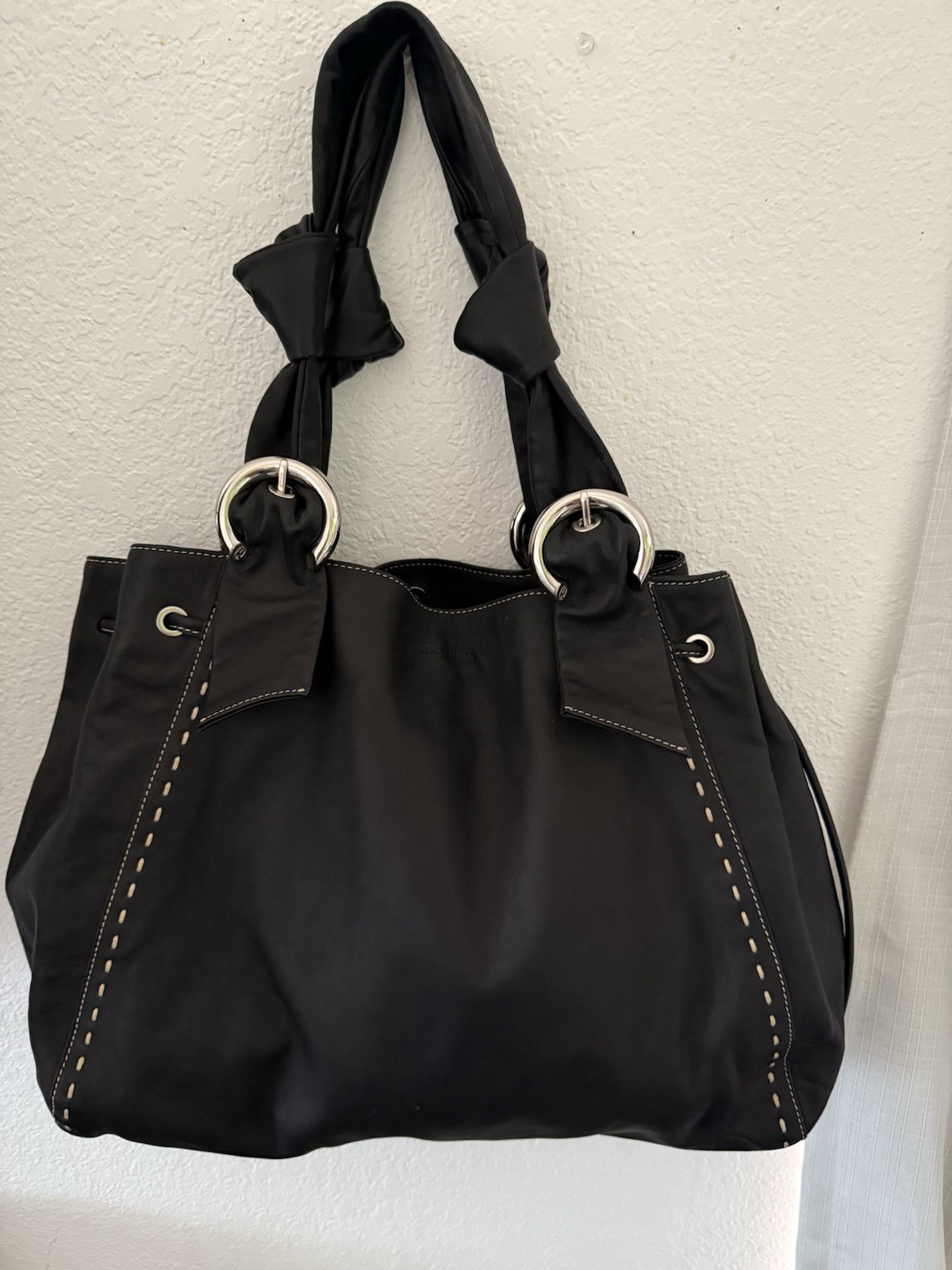 Francesco Biasia Black Leather Large Tote With Silver Metal Hardware