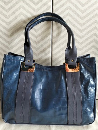 Francesco Biasia Blue Croc Skin Leather Purse Bag