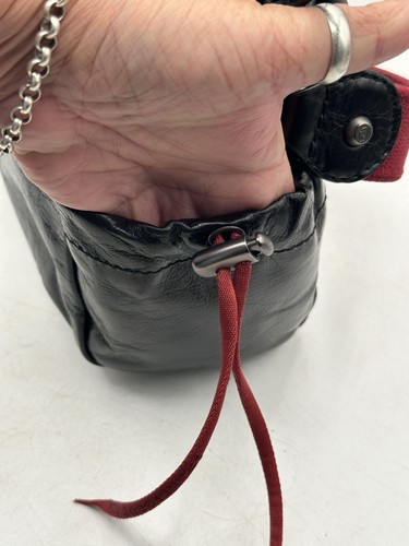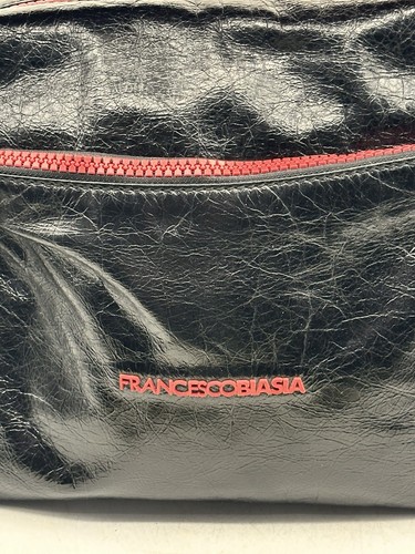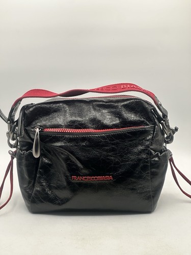 Francesco Biasia Shoulder Handbag Black Leather With Red Accents