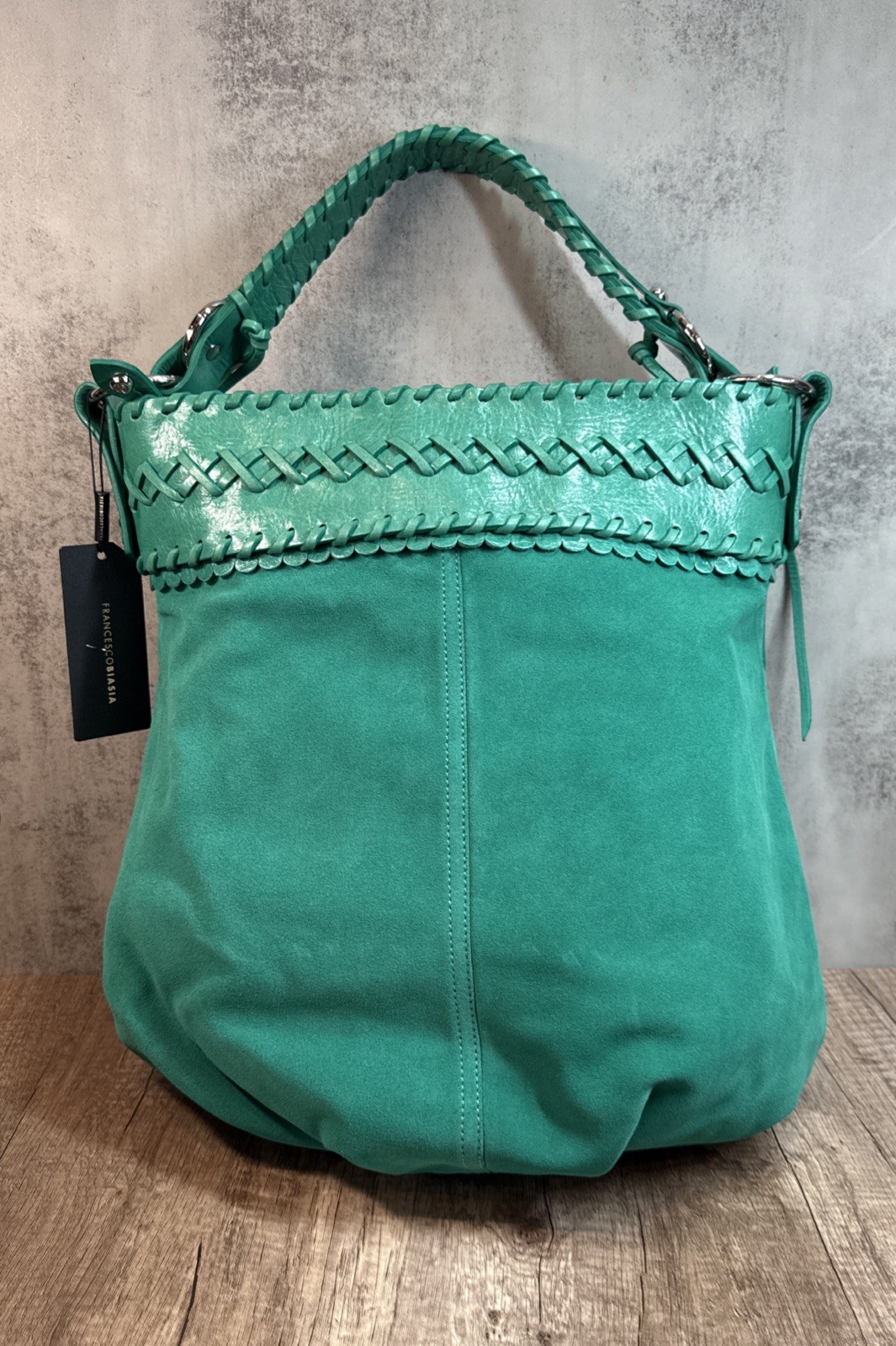 Francesco Biasia Suede Shoulder Bag Emerald Green Sweet Emotion NWT A77102