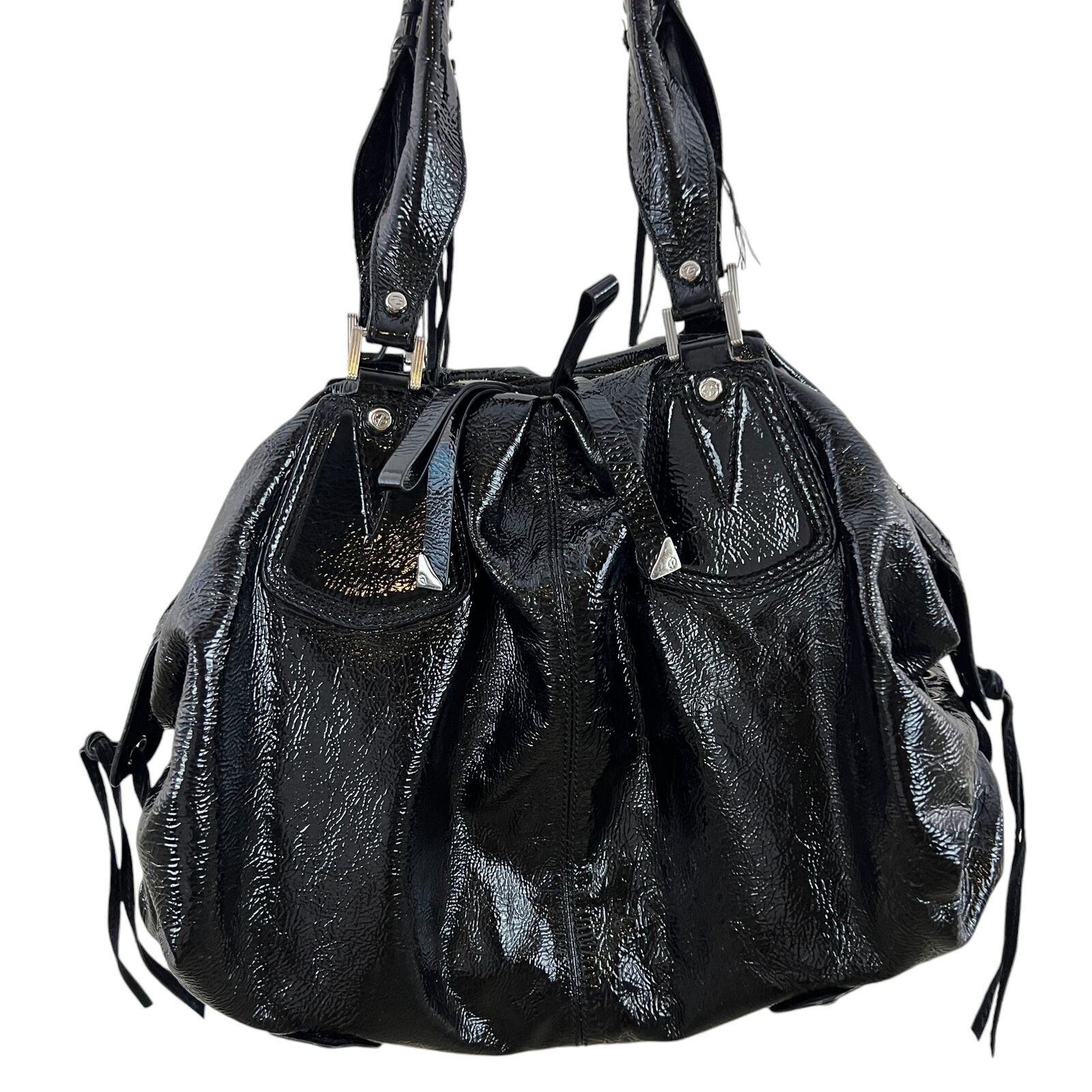 Francesco Biasia Y2K Black Patent Leather Shoulder Bag