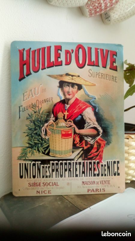 Une Grande Plaque Publicitaire en Métal pour Promouvoir l’Huile d’Olive Made in France
