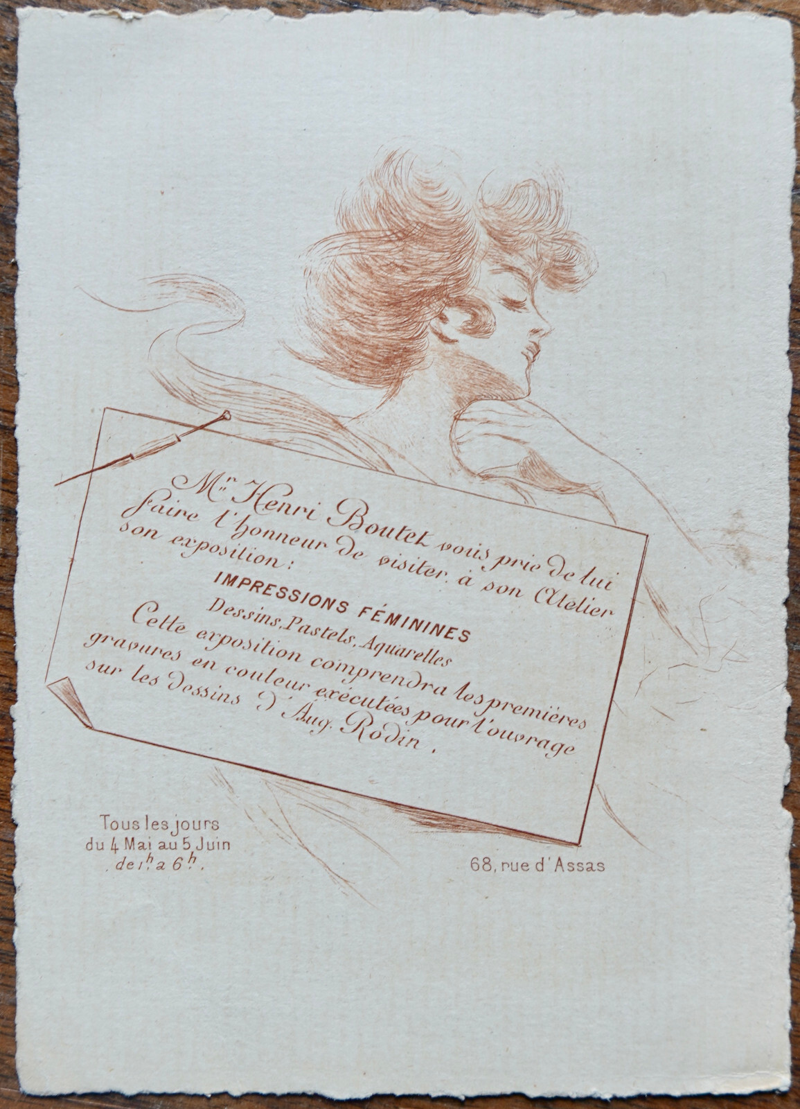 HENRI BOUTET INVITATION EXPOSITION (1900) IMPRESSIONS FEMININES RODIN