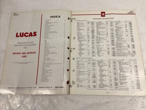 Jaguar Daimler 1966 Lucas Equipment and Spare Parts E Type MK II Daimler 2.5L V8