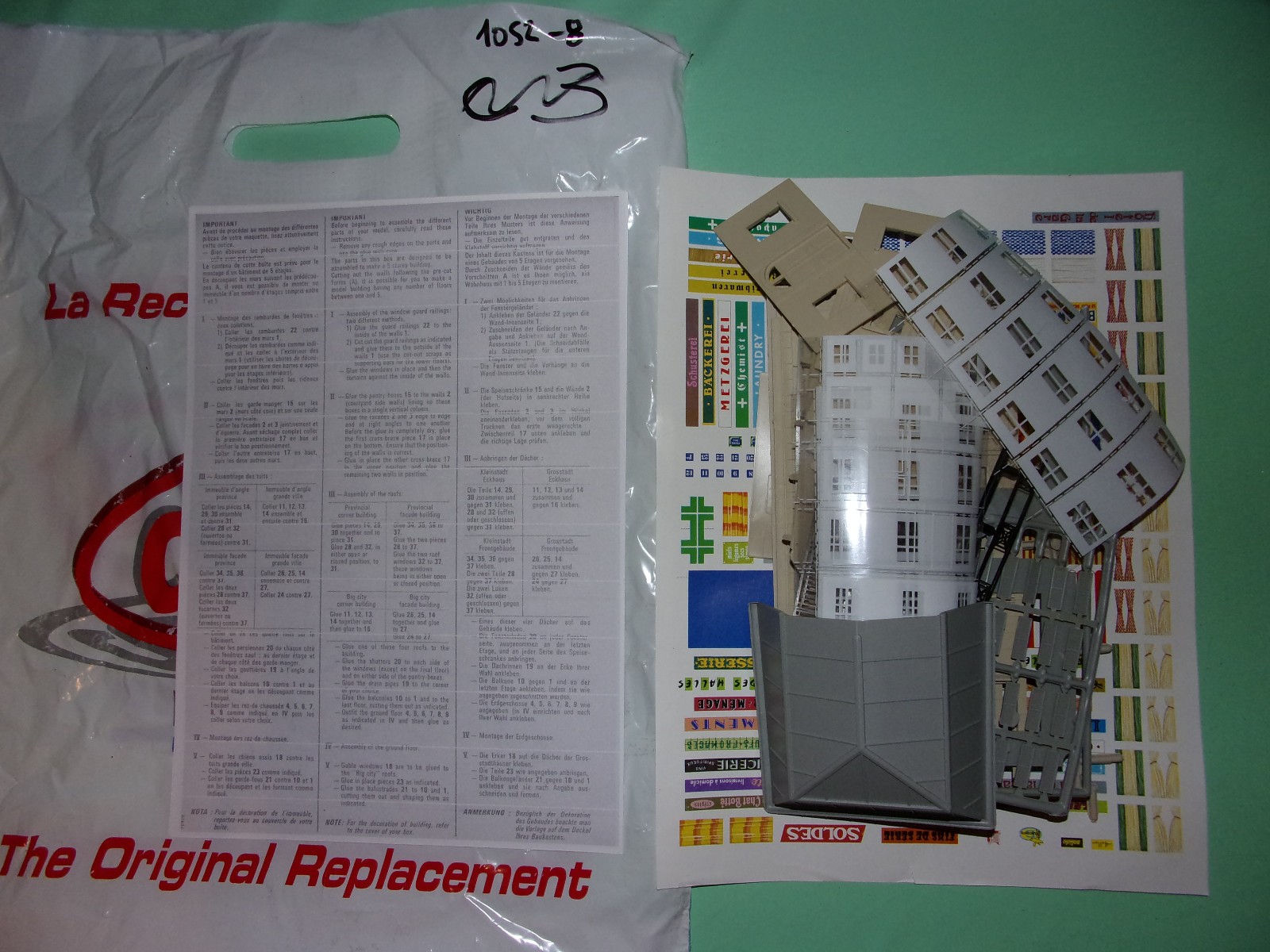 La maquette JOUEF 1052 NEUF représente un immeuble d’angle typique des villes européennes, avec un toit en zinc et des façades détaillées. Les pièces sont soigneusement conçues pour offrir une expérience de construction réaliste et engageante. La maquette est composée de plusieurs éléments, dont des murs, des fenêtres, des portes et un toit en zinc, qui doivent être assemblés avec soin pour créer l’immeuble final.