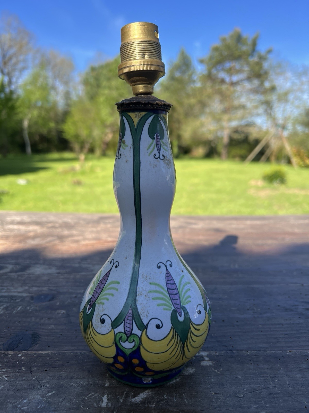 Lampe Faïence Peinte Art Deco Henriot Quimper Antique Lamp