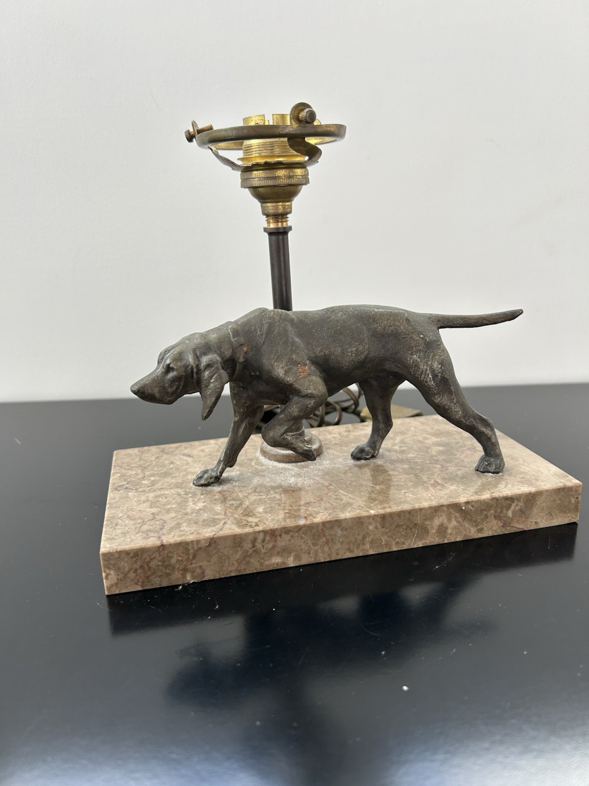 Lampe Veilleuse Chien de Chasse Régule et Marbre Art Déco : Un Chef-d’Œuvre de L’Époque