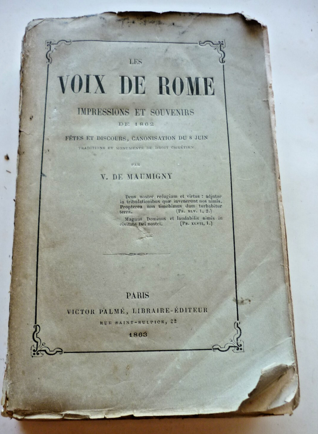 – LES VOIX DE ROME – Impressions et souvenirs de 1862 – V de MAUMIGNY – 1863