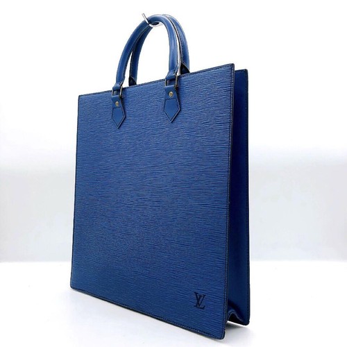 LOUIS VUITTON Sac Plat Tote Bag Epi Blue A4 Leather Vintage Authentic MBc1706