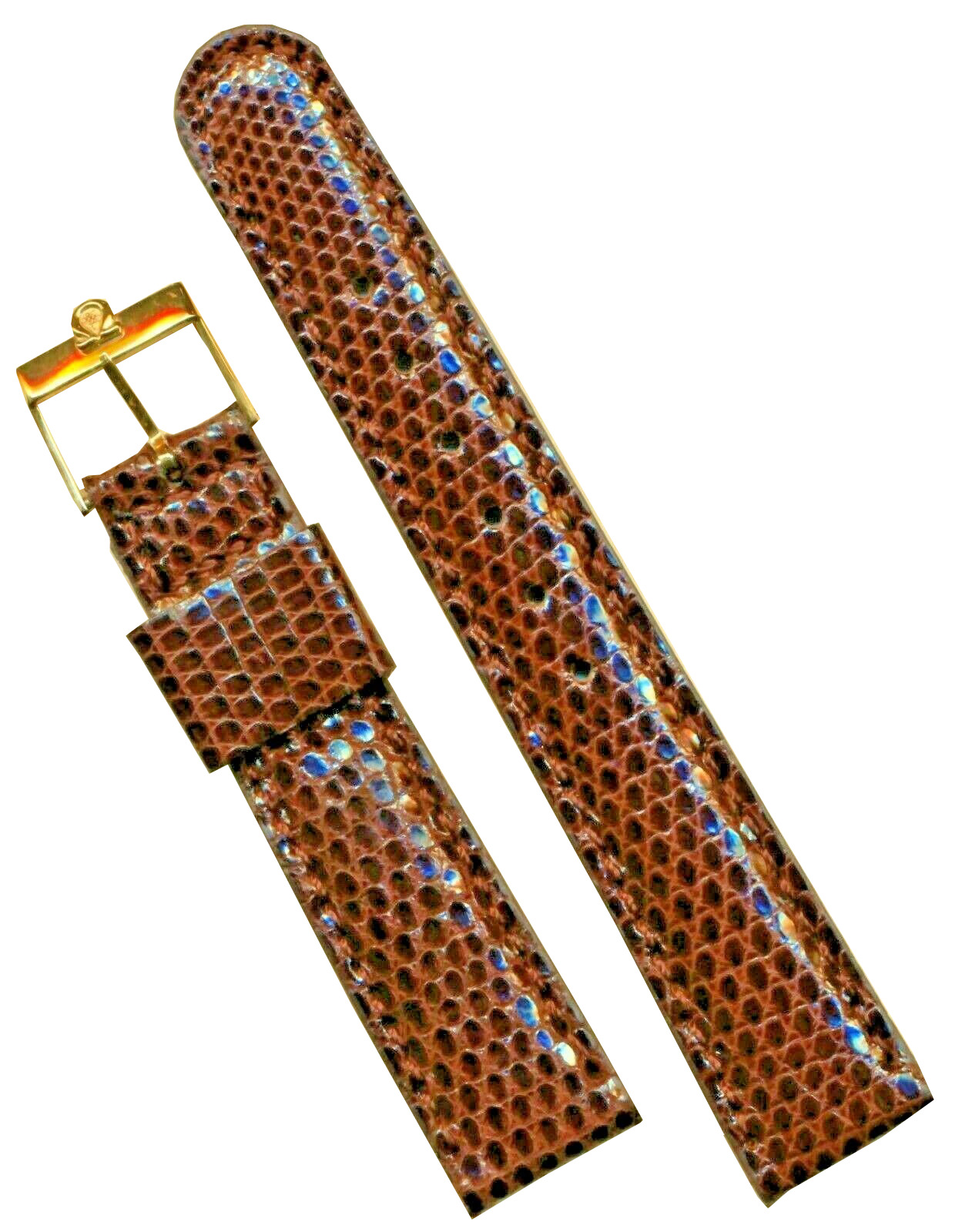 Caractéristiques du marron 20mm véritable lézard MB bande cuir doublé & vintage or Omega boucle