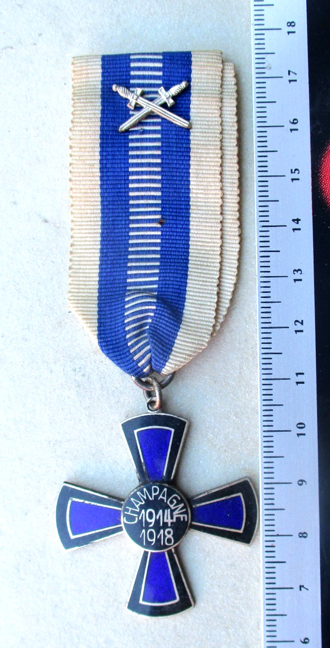 La Croix de Champagne 1914-1918 a été créée en 1918, à la fin de la Première Guerre Mondiale, pour commémorer les batailles qui ont eu lieu dans la région de Champagne, en France. La médaille a été instituée par le Kaiser Guillaume II, empereur d’Allemagne, pour récompenser les soldats qui ont participé à ces batailles et qui ont fait preuve de bravoure et de dévouement.