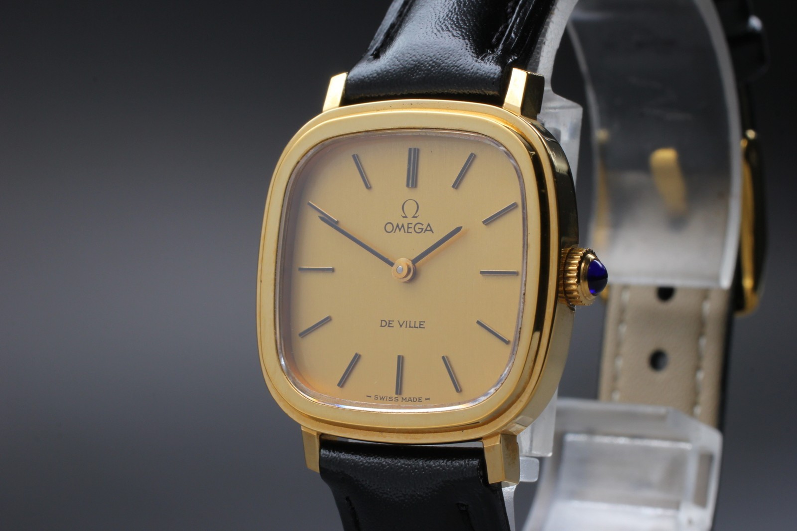 Montre Vintage 1970s Omega De Ville Gold Dial Tonneau Hand-Wind Dress Dress…