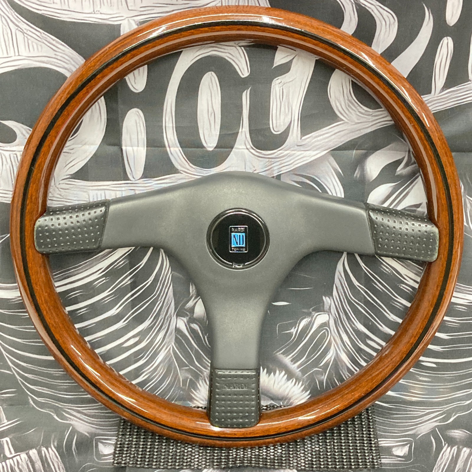 NARDI Wood Steering wheel TORINO 365 mm 14.5 inch Leather 3 Spokes Vintage