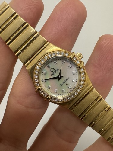 Omega Constellation 18KT Yellow Gold Diamond Bezel 22mm Ladies Mother Of Pearl