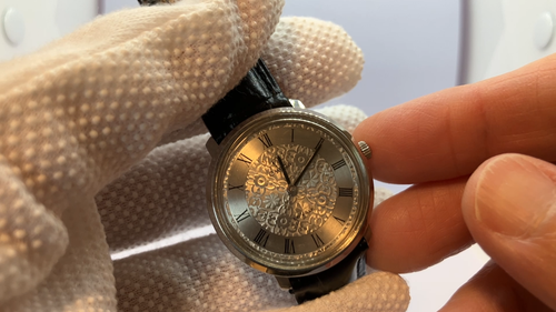Dès le premier abord, l’OMEGA De Ville TOOL.104 séduit par son boîtier raffiné en acier inoxydable, qui abrite un cadran aux motifs floraux romains. Ce design unique et délicat confère à la montre une touche d’élégance et de sophistication, qui la distingue des autres créations de l’époque. Les indices romains et les aiguilles fines ajoutent une touche de classicisme à la montre, tandis que le motif floral ajoute une note de fantaisie et de créativité.