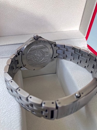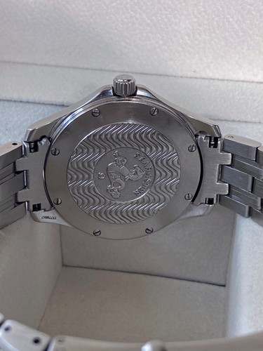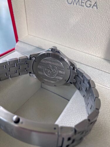 La Seamaster 120M 2521.81.00 arbore un boîtier en acier inoxydable de 41 mm de diamètre, conçu pour résister aux pressions extrêmes des grandes profondeurs. Le design est à la fois robuste et élégant, avec des lignes nettes et des bords arrondis qui donnent une impression de solidité et de durabilité. La lunette est rotative et comporte des graduations pour faciliter la lecture des temps de plongée.