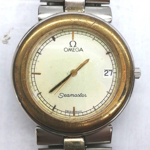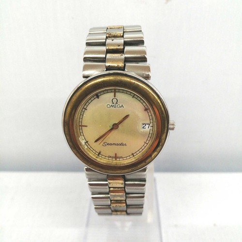 Omega Seamaster Vintage Date Acier Inoxydable Argent Or Quartz Montre Hommes